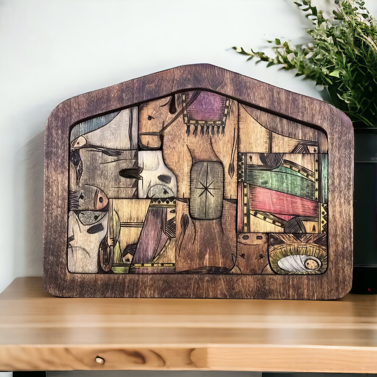 Nativity Wood Puzzle With Wood Burned Design - Jesus Birth Figurine, Christmas Decor
